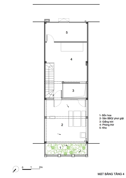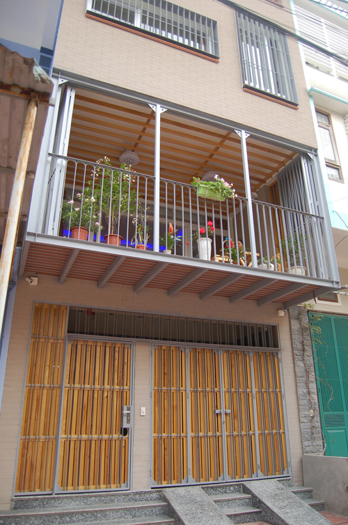 KTS Cao Hải Sơn (Cao Architects) đưa ra ý tưởng ban công rộng 15 m2 ở tầng 2 với kết cấu thép nhẹ được treo lên dầm chịu lực của tầng 3.