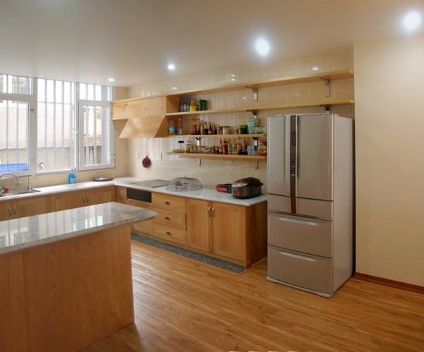 Tủ bếp được thiết kế mở phù hợp với thói quen sử dụng của chủ nhà.