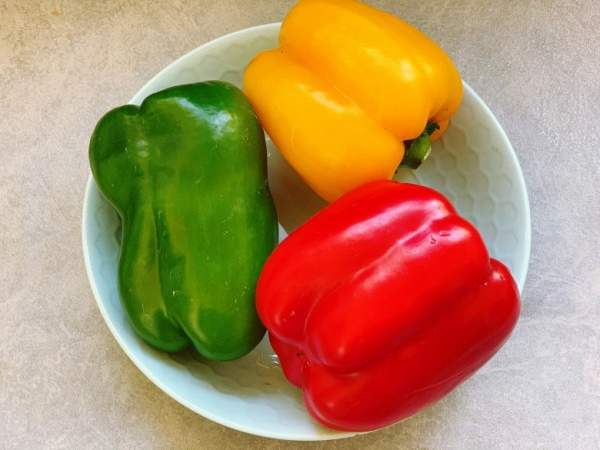 - 500g thịt đầu vai bò, 1 quả ớt chuông vàng, 1 quả ớt chuông xanh, 1 quả ớt chuông đỏ, 1 muỗng cà phê muối, 2 muỗng cà phê rượu nấu ăn, 1 muỗng canh nước tương, 1 ít bột thì là, dầu ăn vừa phải, 1 muỗng cà phê hạt tiêu đen xay, dầu hào 1 muỗng canh, 1 ít bột gừng, ớt cay 1 quả