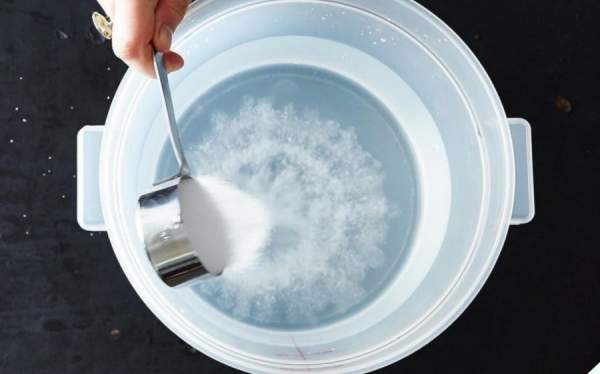 - Lấy một chiếc bát to, sau đó pha nước muối theo tỉ lệ: cứ 100 ml nước thì thêm 5.5 gram muối. Tuỳ vào trọng lượng của miếng thịt, bạn có thể cân đối để điều chỉnh lượng nước muối cho phù hợp.