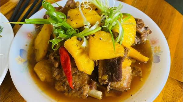 Thành phẩm với thịt vịt hầm mềm mại, thấm gia vị, thêm chút chua ngọt của thơm tạo nên hương vị hấp dẫn. Món này nên dùng khi còn nóng, ăn cùng cơm nóng thì ngon tuyệt.
