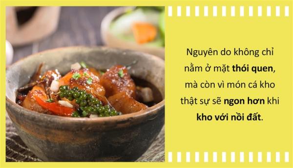 Nguyên do thực ra không chỉ nằm ở mặt thói quen, bởi vì món cá kho thật sự sẽ ngon hơn khi kho với nồi đất. Theo nghiên cứu thì các loại nồi bằng đất đều có tráng một lớp men mỏng, lớp men này là vật liệu "trơ", nên cho dù có tiếp xúc với nhiệt lượng cao thì sẽ không chuyển thành chất xúc tác làm ảnh hưởng đến nguyên liệu trong nồi. Vậy nên có thể nói, các món ăn được nấu bằng nồi đất sẽ có hương vị tinh khiết và ít bị thay đổi nhất.
