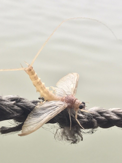 Cả tháng vật vờ lên lột xác vài ngày, đẻ trứng rồi chết. Trứng nở thành ấu trùng lại trở về đáy sông chờ ngày được ngoi lên mặt nước lột xác.