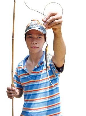Câu rắn mối không khó, kể cả trẻ con nơi đây cũng bắt được. Chỉ cần lấy ít cơm nguội trộn cám, lột vài ba con tép trấu móc vào lưỡi câu lưỡi câu, nhẹ nhàng thả vào trong các bụi cây có rắn mối sinh sống thì thế nào cũng có vài con dính mồi. Khi miệng rắn mối vừa dính lưỡi câu thì giật lên một cái là xong, chừng hơn tiếng đồng hồ buổi ban trưa thì vài ba người đi câu có thể câu được vài chục con rắn mối để làm thịt.