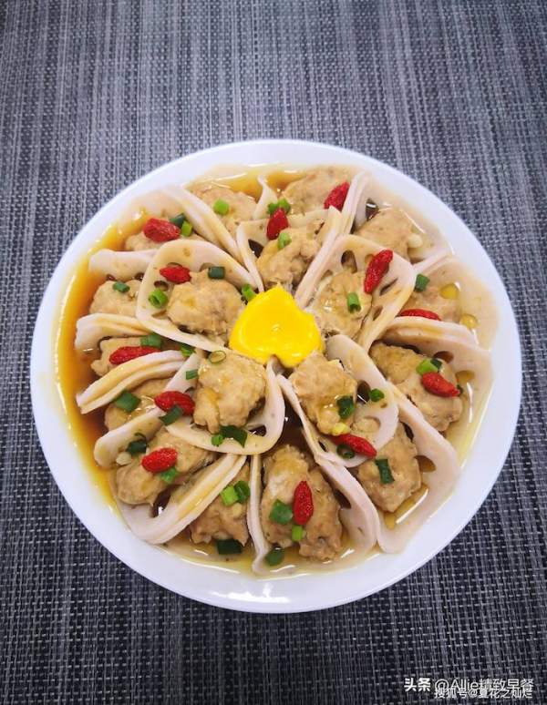 Nguyên liệu: Củ sen, thịt bằm, hành, kỷ tử, trứng, gia vị.