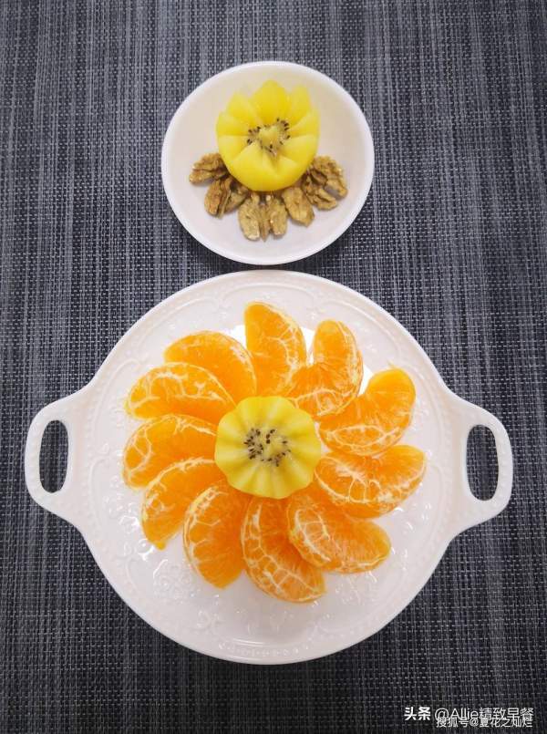 Dùng quýt, kiwi để trang trí bàn ăn thêm bắt mắt, thêm một ít nhân quả óc chó để bổ sung các chất dinh dưỡng như chất béo chất lượng cao và các loại khoáng chất khác.