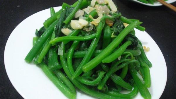 Rau khi đã tái bạn thêm phần tỏi còn lại vào chảo và thêm dầu ăn và dầu hào kế đến tiếp tục đảo đều đến mức rau chín thì tắt bếp và múc ra đĩa ăn ngay khi nóng. Nếu để các món rau xào tỏi trên chảo khi đã nấu xong khiến món ăn mất đi một lượng lớn chất dinh dưỡng.