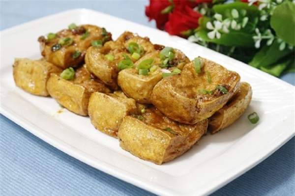 Khi ăn dọn đậu hũ chiên ra đĩa, rưới sốt me lên trên, rắc thêm ít mè trắng rang và hành boa rô thái sợi cho bắt mắt là có thể dùng được rồi.