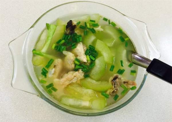 Sau đó cho bí xanh vào, nêm lại gia vị vừa ăn. Tắt bếp, thêm ít hành lá, ngò rí.