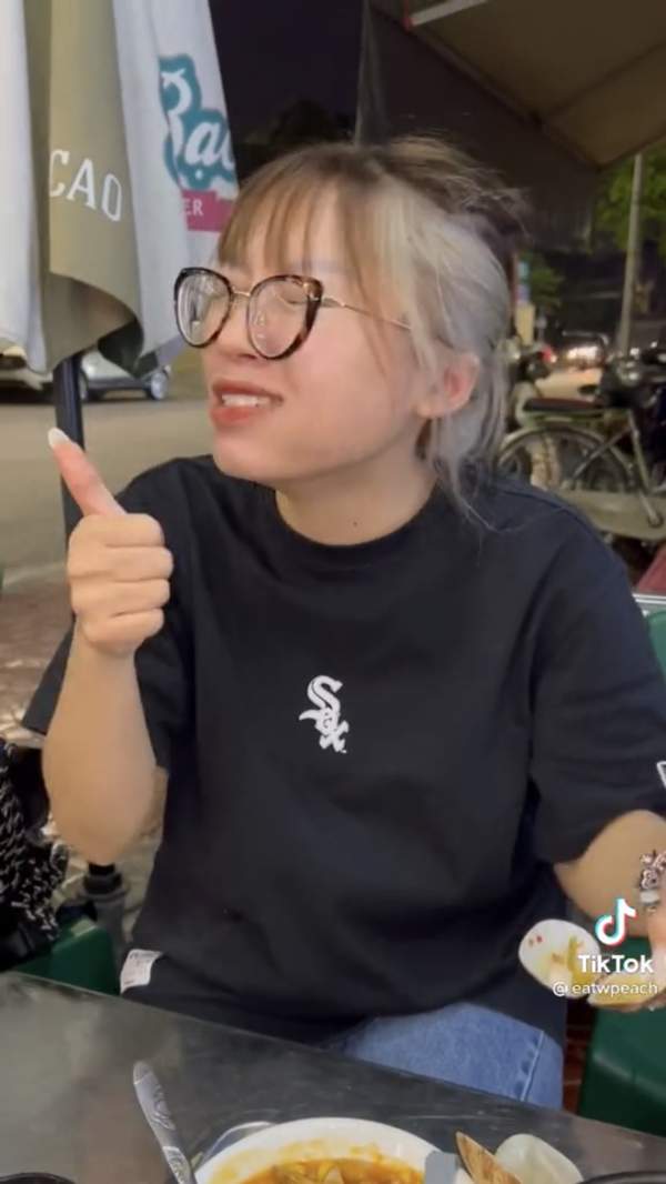 Biểu cảm đáng yêu của Pít khi cô ăn món ốc theo gợi ý trên bản đồ ẩm thực