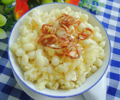 Xôi ngô chín bạn dùng kèm với hành phi hay thịt nướng đều rất ngon.