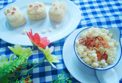 Bạn cũng có thể tạo thêm những hình thù ngộ nghĩnh cho bé yêu từ món xôi ngô thơm dẻo này nữa đấy.