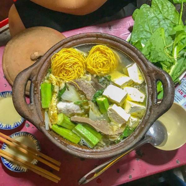 Nồi lẩu nhỏ xinh đầy ắp thịt và các loại “topping” đặt trên bếp than hồng nhìn vô cùng đặc biệt. Nước dùng ngon ngọt, đậm đà. Bên trong là những miếng thịt bò tươi rói, gân bò, lưỡi bò, đuôi bò,… Ngoài ra còn có nấm, rau, váng đậu, mì trứng… Một nồi lẩu như này dành cho 2 đến 3 người ăn vẫn đủ no. Có lẽ vì ngon rẻ nên quán thu hút rất nhiều các bạn trẻ, đặc biệt là học sinh, sinh viên.