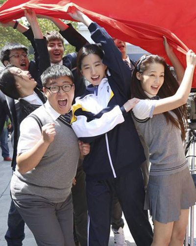 Hác Thiệu Văn (hàng đầu, bên trái) đóng vai phụ trong phim "Hóa ra anh vẫn ở đây", hợp tác cùng các ngôi sao đình đám Lưu Diệc Phi, Ngô Diệc Phàm.