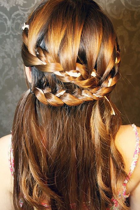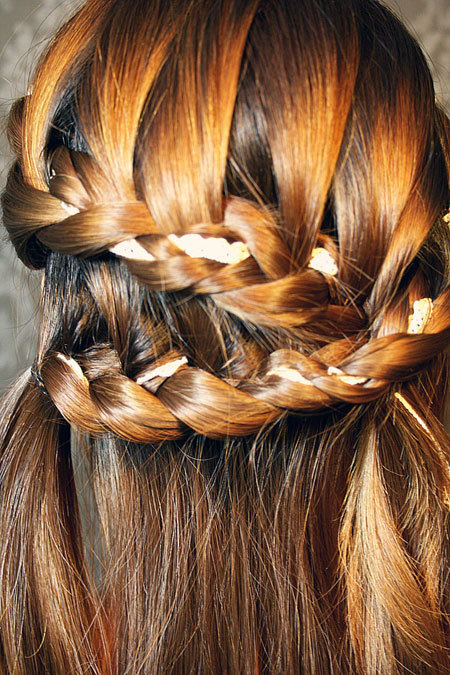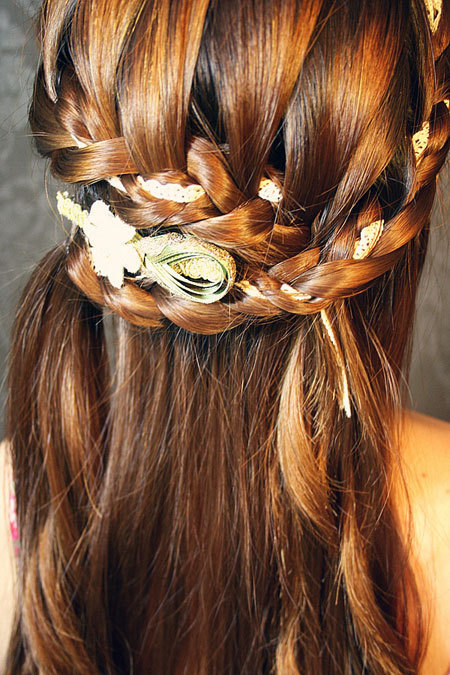 Những mái tóc dài được tết theo nhiều kiểu, nhưng luôn giữ được nét dịu dàng, đáng yêu cho cô dâu. Những lọn tóc được kết nối với nhau, thêm một dải ruy băng, một chiếc nơ xinh… và sau cùng, phủ một lớp voan tinh khôi và một vương miện xinh xinh. Bấy nhiêu đó, đủ khiến bạn trở thành người con gái đẹp nhất trong ngày trọng đại.