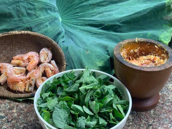 Tôm khô giã mịn, nấu cùng rau ngót. Ảnh: LƯU BÌNH