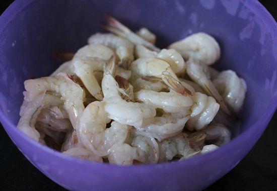 Bước 1: Tôm lột vỏ, bỏ đầu cắt chỉ lưng rửa sạch để ráo.