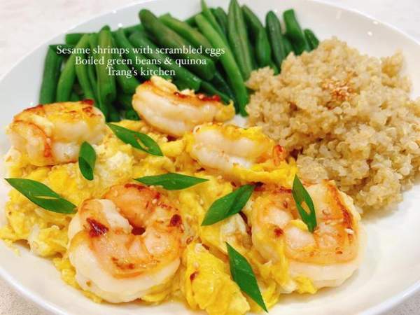 "Món này mình đã giản lược lại rất nhiều trong phần nguyên liệu để phù hợp với cả những bạn đang ăn uống theo chế độ ăn lành mạnh (eat clean) hay là keto đó. Mọi người cùng thử nhé", chị Trang Nguyễn cho biết. Và đó chính là món tôm xào trứng.