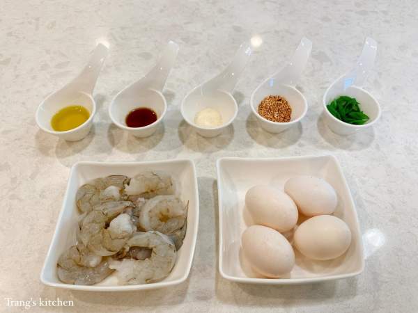 - Cho dầu ăn vào chảo, đợi dầu nóng thì cho tôm vào áp chảo cho chín xém cạnh cả 2 mặt tôm.- Nêm 1 chút xíu muối/ hạt nêm vào rồi lắc đều cho tôm quyện gia vị và có độ xém chảo tạo mùi thơm.- Đập trứng gà vào bát, nêm dầu mè và chỗ muối/ hạt nêm còn lại vào rồi khuấy đều cho tan trứng và gia vị.- Để lửa to cho chảo thật nóng. Đổ hỗn hợp trứng vào chảo tôm rồi nhanh tay khuấy nhẹ cho trứng áo đều- Bày ra đĩa, rắc hạt mè đã rang và hành lá thái nhỏ lên trên rồi thưởng thức thôi.