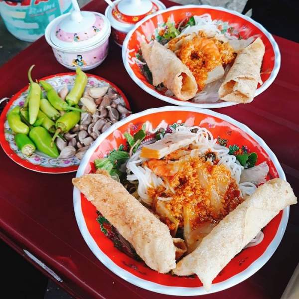 Món bún ấm nóng, thơm nồng mùi rau thơm, ngọt đậm đà của nước lèo tôm tươi hòa quyện cái beo béo của bánh tránh, đậu phụng, đặc biệt vị ngọt giòn tan của những con nuốt sần sật trong miệng hứa hẹn sẽ là món khó quên.