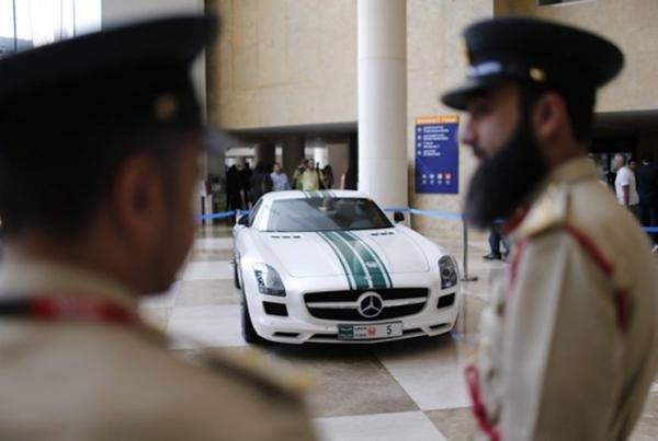 Thương hiệu Mercedes góp mặt trong lực lượng cảnh sát Dubai với chiếc SLS AMG cửa mở dạng cánh chim. Xe có thể tăng tốc từ 0-100 km/h trong 3,6 giây nhờ động cơ V8, 539 mã lực.