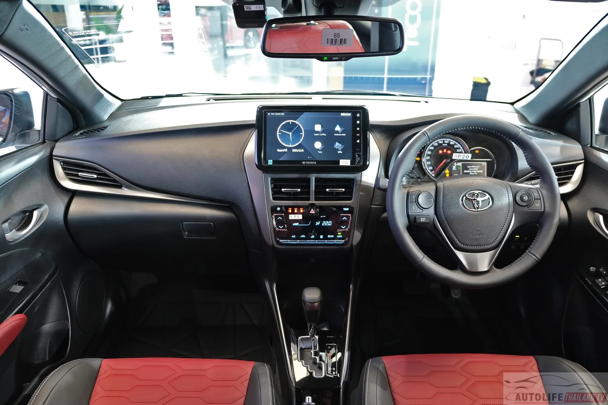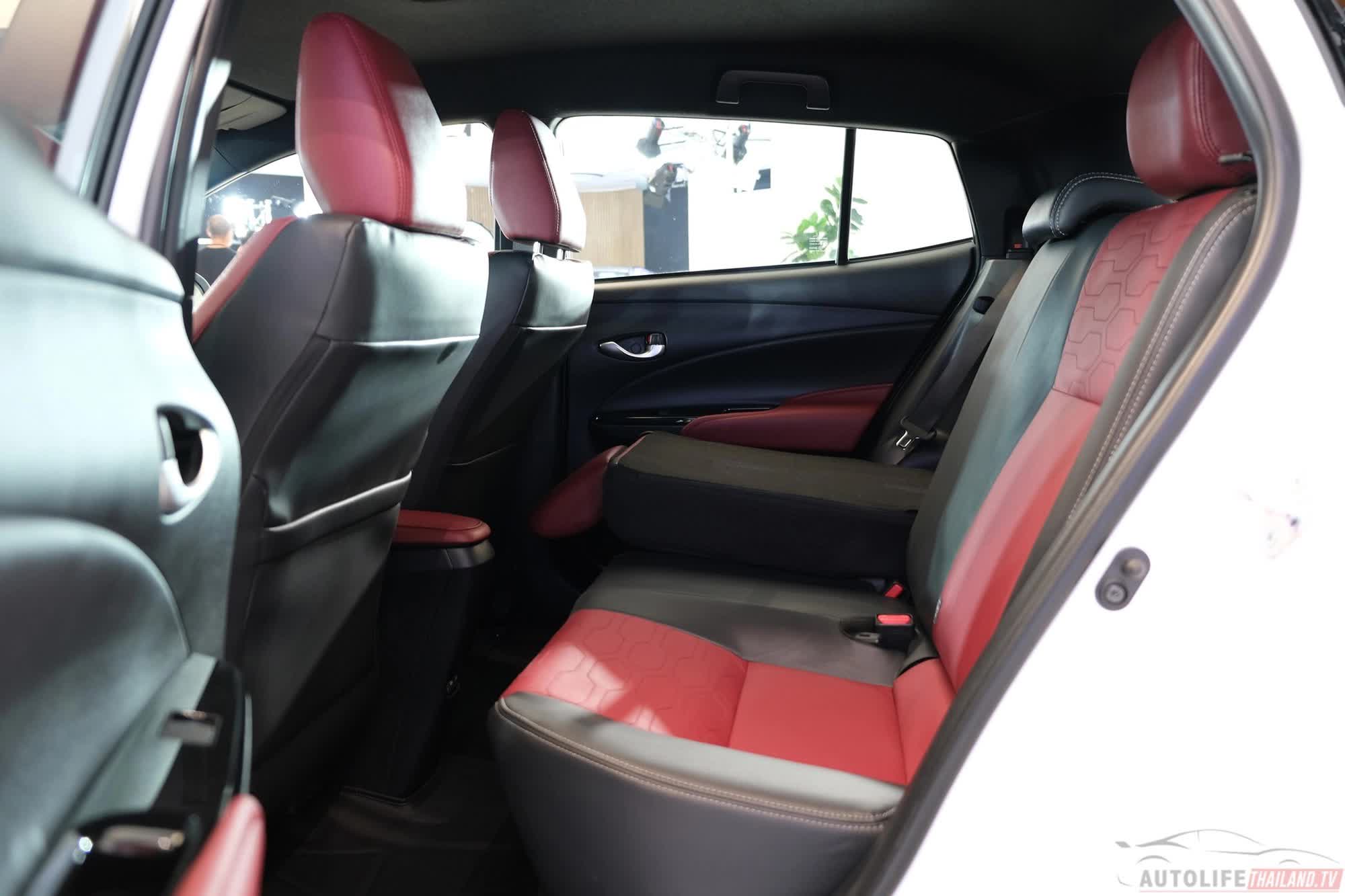Trong khi đó, Yaris phiên bản cao cấp sở hữu nhiều chi tiết bọc da như ghế, vô-lăng, táp-lô, tappi,... Ghế trước được trang bị thêm túi đựng đồ, ghế sau có thể gập theo tỷ lệ 60:40. Màn hình giải trí mở rộng lên 9 inch kết nối Apple CarPlay & Android Auto cùng 6 loa âm thanh đầu ra.