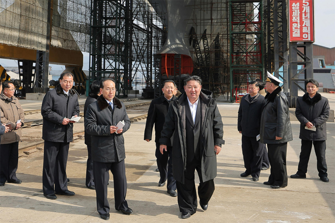 Hãng thông tấn trung ương Triều Tiên KCNA hôm nay đưa tin lãnh đạo Kim Jong-un đã cùng các quan chức, chỉ huy quân đội thị sát nhà máy đóng tàu chiến cỡ lớn, song không nêu thời gian và địa điểm cụ thể. "Lãnh đạo Kim Jong-un đã kiểm tra tiến độ chế tạo tàu ngầm chạy bằng năng lượng hạt nhân mang tên lửa dẫn đường chiến lược", bản tin của KCNA có đoạn.