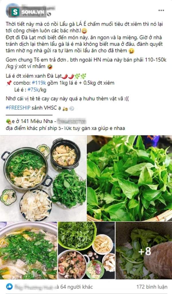 Có cung ắt có cầu, những ngày này, khắp các diễn đàn và chợ mạng lại tấp nập rao bán lẩu gà lá é. Người bán combo cả nồi lẩu từ nước lẩu, gà, rau lá é, ớt xiêm, khách về chỉ việc bật bếp lên để thưởng thức. Những bài đăng bán set lẩu gà lá é được chốt đơn ầm ầm từ thực khách.