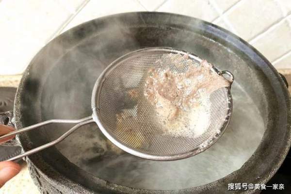 Đồ nước vào nồi, thêm gừng thái sợi, chần gà trong vài phút, vớt bỏ bọt.