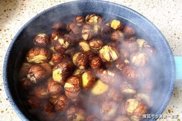 Đun sôi để dễ bóc vỏ hạt dẻ.