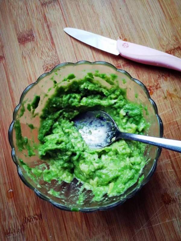 Bỏ vỏ bơ, sau đó cho bơ vào bát, dùng thìa dầm nhuyễn.