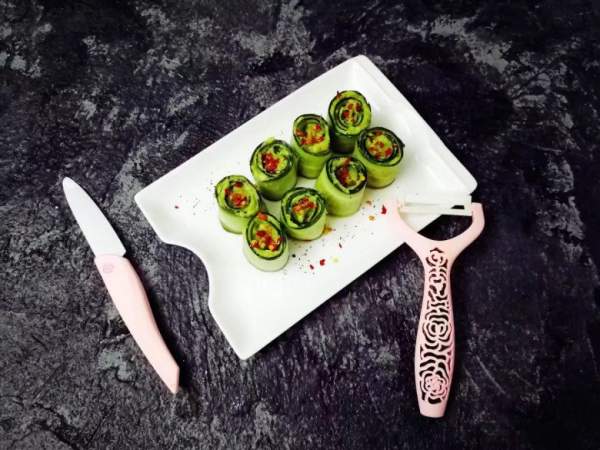 Làm lần lượt cho đến hết. Sau đó rắc ít bột ớt lên trang trí là bạn đã có món dưa chuột cuộn bơ vừa ngon mát lại tốt cho sức khỏe rồi.