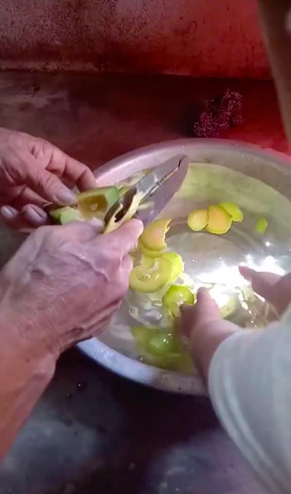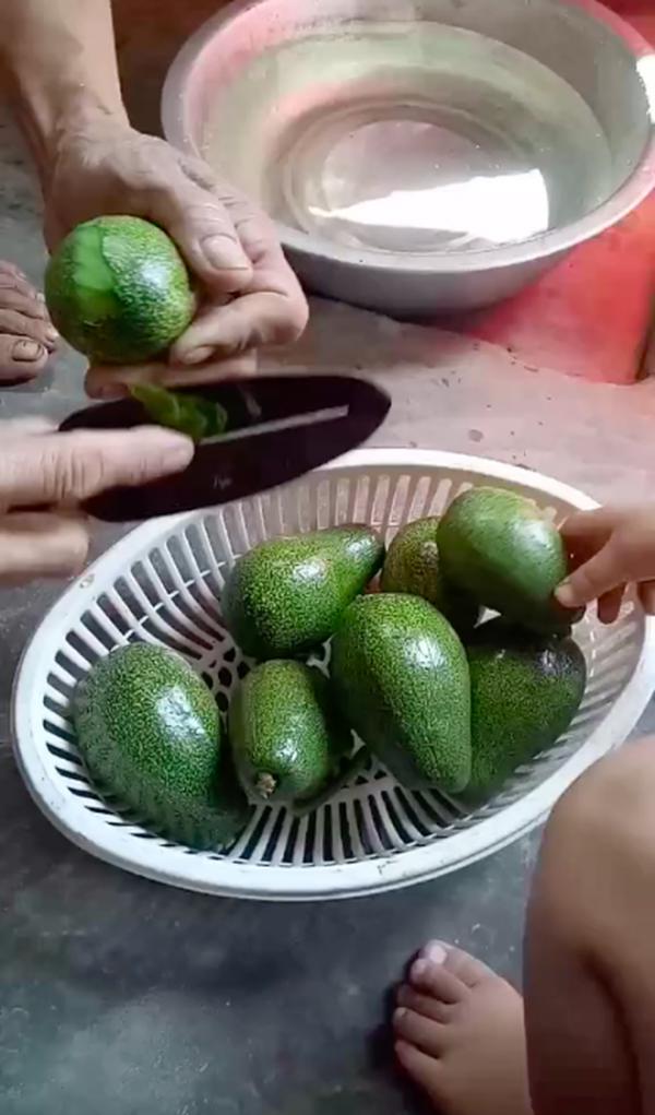 Những quả bơ non sau khi hái xuống sẽ được gọt vỏ, cắt thành từng lát mỏng