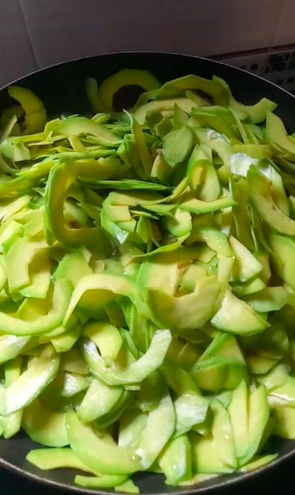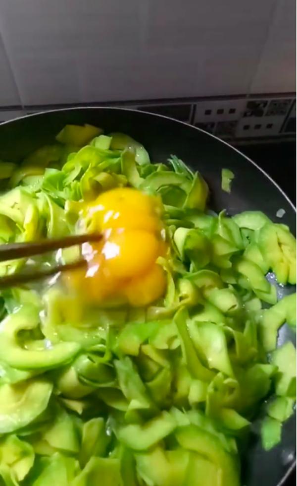 Bơ non sau khi hái sẽ được gọt vỏ, bào thành từng miếng mỏng, sau đó mang đi xào với trứng. Thoạt nhìn, chắc hẳn ai cũng lầm tưởng đây là món khổ qua xào trứng quen thuộc. Hiếm người nghĩ rằng bơ cũng có thể làm được điều tương tự.