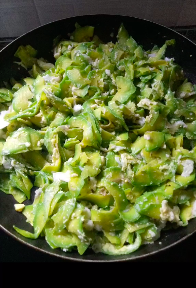 Tiếp theo thì mang đi xào với trứng y hệt khổ qua (mướp đắng)