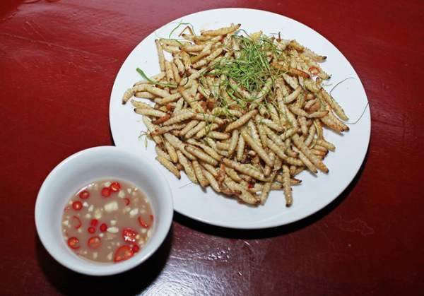Sâu tre rang lá chanh có thể ăn với cơm nếp hay làm mồi nhậu. tiết trời Tây Bắc vào thu se lạnh, nhấm nháp cảm giác tê tê nơi đầu lưỡi cùng cái bùi bùi, béo béo thì thật tuyệt vời.