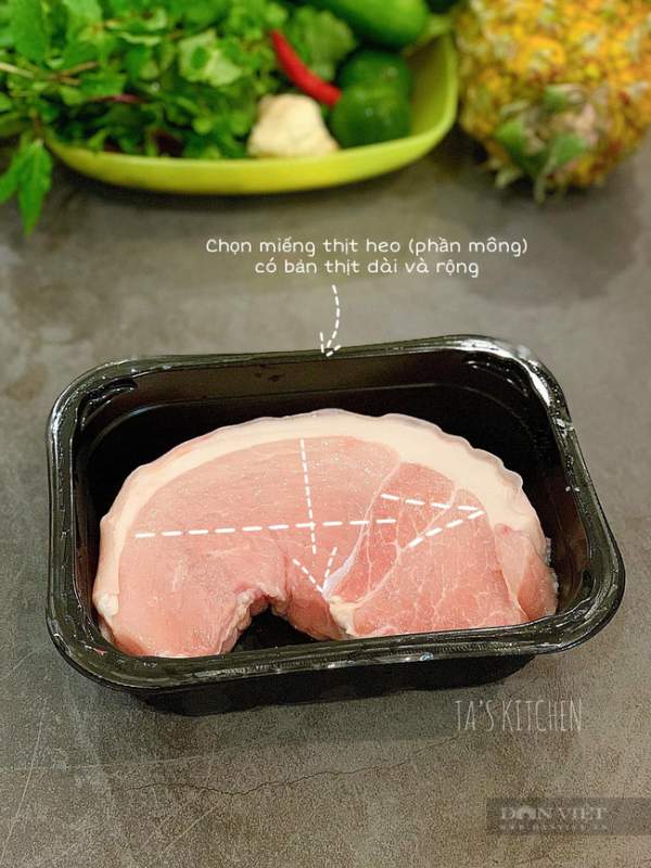 - 500 gr thịt mông heo (chọn phần thịt mông, có bản thịt rộng sẽ thái được nhiều miếng thịt 2 đầu da)