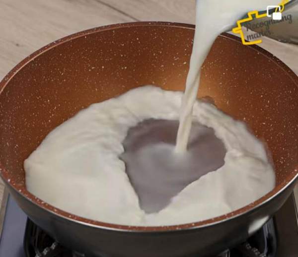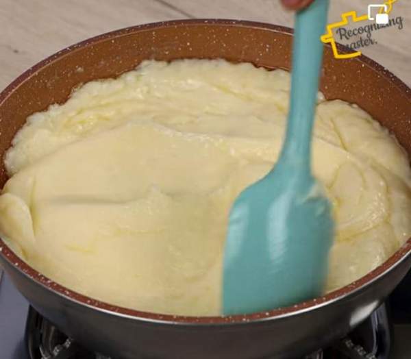 Khuấy tiếp trên lửa vừa cho phô mai mozzarella tan và hỗn hợp đông đặc dần...