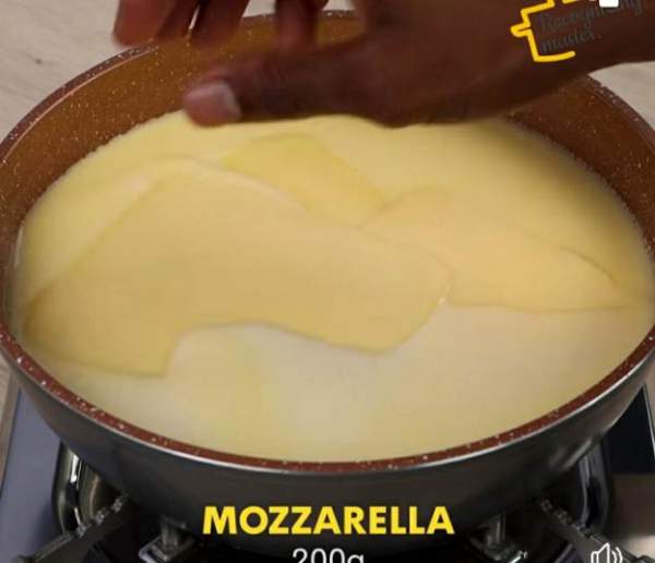 Thì cho tiếp vào nồi 200 gram phô mai mozzarella...