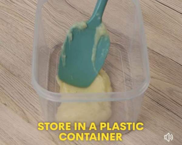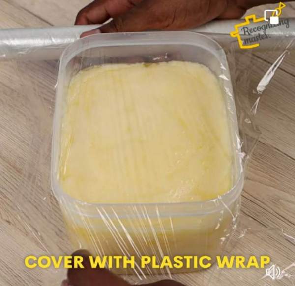 Lúc này, các bạn múc hết phô mai ra một cái hộp nhựa, dàn thật đều