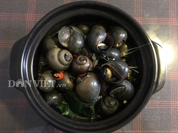 Ốc luộc được anh Nhân chế biến rất cầu kỳ để đón khách quý đến thăm nhà.