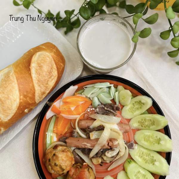 1 lát bánh mì dày 3cm xé nhỏ.