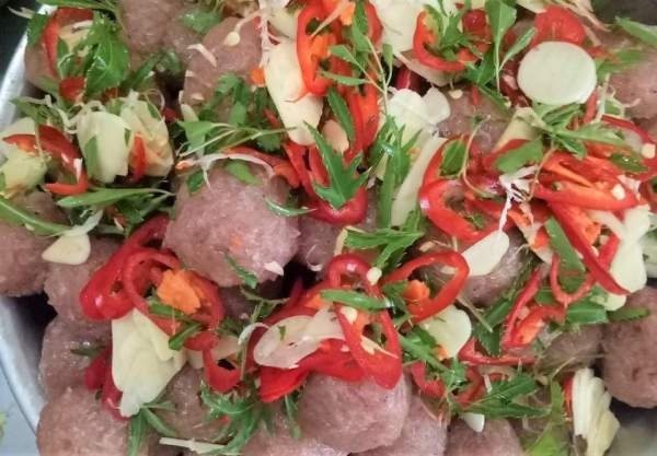 Những cục nhân nem được vo sẵn để gói