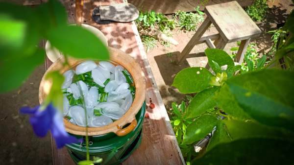 Ở quê Phương, chỉ cần chèo ghe, đi dọc hai bờ sông một lúc là chặt được rất nhiều quầy dừa lớn. Với dừa nước, có thể ăn liền hoặc chế biến thành nhiều món ngon. Trong đó, rất nhiều người mê dừa nước rim đường thốt nốt, vì màu sắc rất bắt mắt, hấp dẫn.