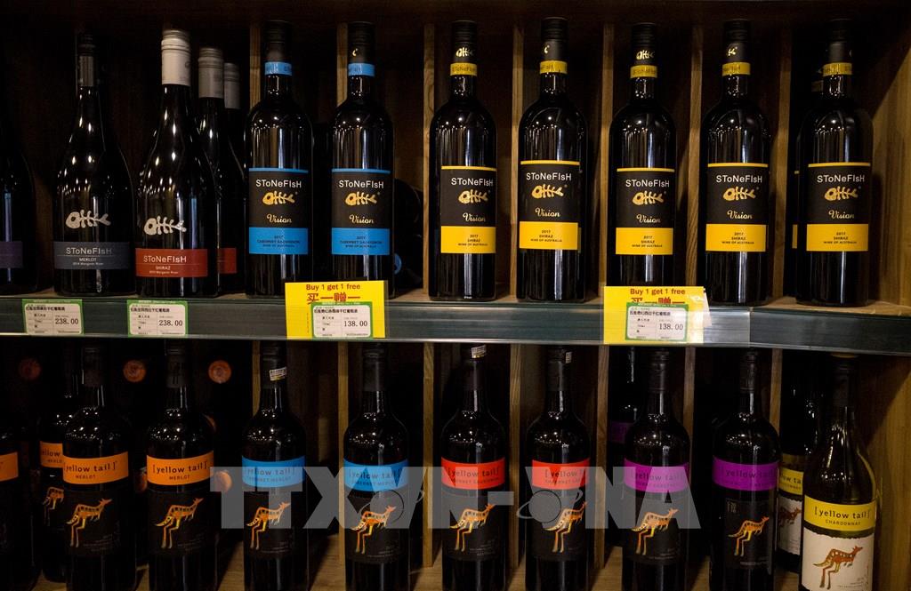 Rượu vang Australia được bày bán tại một cửa hàng ở Bắc Kinh, Trung Quốc, ngày 18/8/2020. Ảnh: AFP/ TTXVN