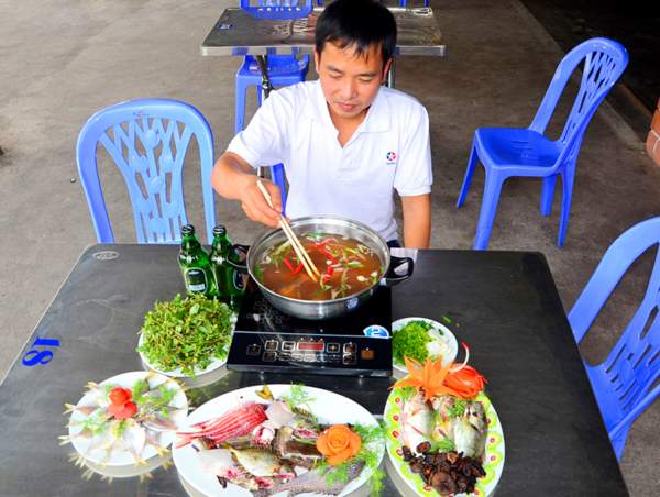 Bên nồi lẩu cá bốc khói, thơm nức, anh bảo, để chế biến món ăn dân dã nhưng ngon miệng này chỉ cần một số ít phụ gia đi kèm.
