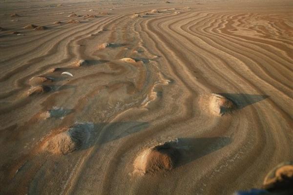 Mặc dù nhìn trên bề mặt, sa mạc Dasht-e Kavir giống như bề mặt cứng nhưng phía dưới là lớp bùn mềm nên việc đi trên sa mạc rất nguy hiểm.