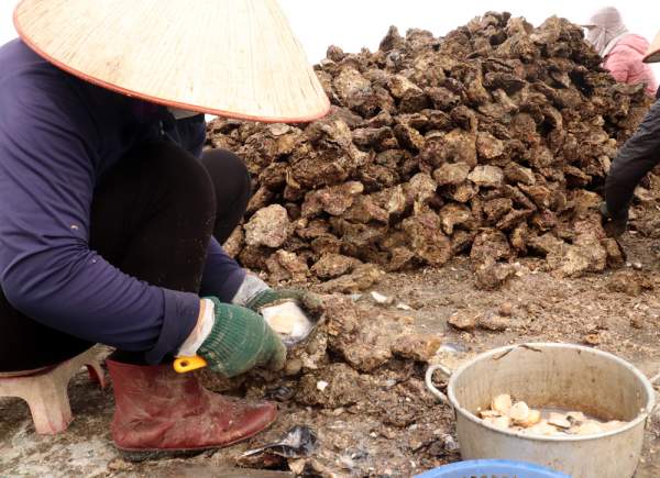 Trên bờ biển, một đống lớn như đống đá được vớt lên từ biển. Thoạt nhìn thấy từng gộc ghệch, xù xì. Nhìn kỹ mỗi con to chừng cái bát ăn cơm, có hình dáng giống con hà biển, dạng nhuyễn thể 2 mảnh vỏ… Đáng nói là chúng rất to, gấp vài chục lần con hà biển.