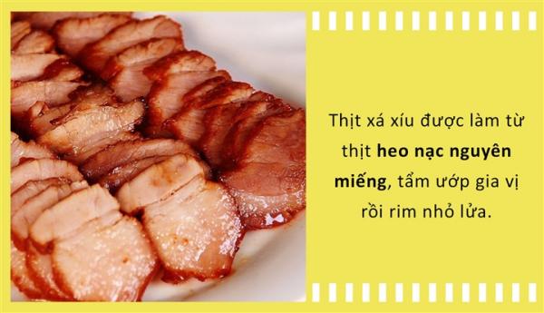 Thịt xá xíu của cao lầu cũng phải được chế biến từ loại thịt heo nạc nguyên miếng, được lựa chọn hết sức cẩn thận. Thịt heo để nguyên miếng to được tẩm ướp mắm muối, ngũ vị hương cho thấm đều rồi rim nhỏ lửa. Thịt chín tới, đầu bếp sẽ vớt thịt ra và tiếp tục cho cà chua, hành tây xay nhỏ, dầu vào nước dùng rồi đun tiếp hỗn hợp trên để làm nước sốt. Cao Lầu trở nên đặc biệt chính nhờ thứ thịt xá xíu này. Miếng thịt chín vừa phải, mềm và có màu đỏ gạch nhìn vô cùng hấp dẫn.