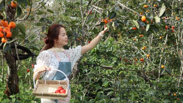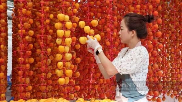 Những trái hồng vàng tới, già sẽ được thu hoạch, đưa về xưởng sơ chế để treo lên giàn. Ảnh: Văn Long.